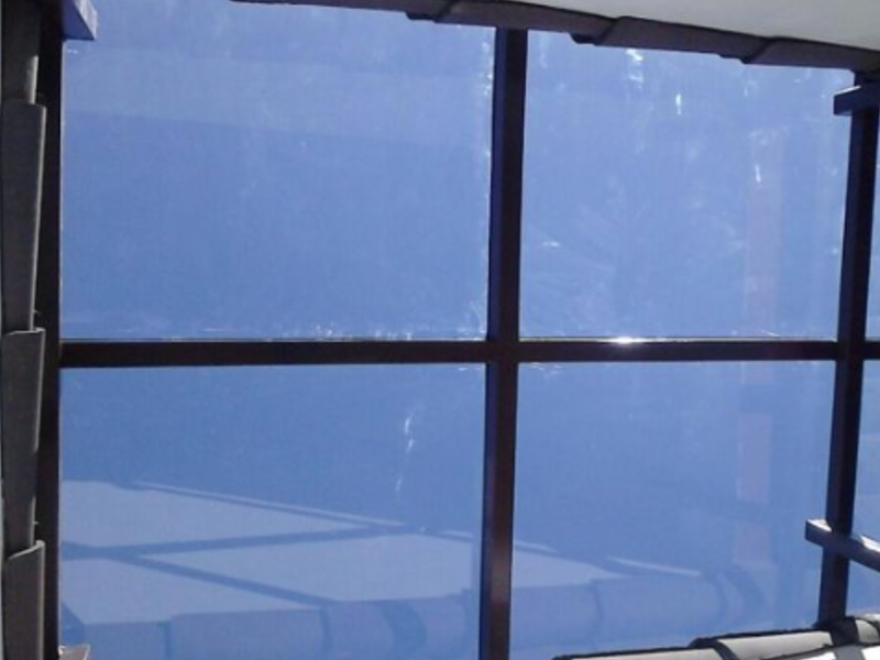 Reforzado con una serie de materiales como film de policarbonato y fibra de vidrio que lo protegen del impacto de balas. Aplicable para ventanillas de banco y casetas de seguridad.