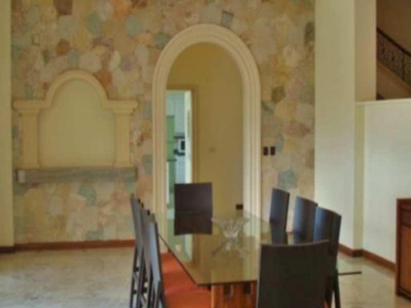 La casa en Sierra de Santa Elena es una propiedad impresionante con un área de terreno de 3,169 v² y una construcción de 1000 m². Cuenta con 5 recámaras, 3 salas, cocina, comedor, estacionamiento para 14 vehículos, piscina y bar.