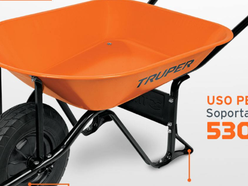 Consiste en una estructura de metal con ruedas en la parte trasera y una pala en la parte delantera, diseñada para levantar y transportar objetos.